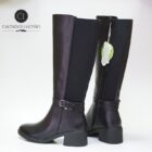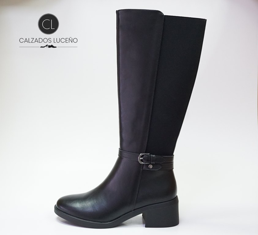 Amarpies Bota Negra Mujer Tacon Bajo Negra Con Cremallera y Elastico que se Ajusta a la Pierna Modelo AHS29488.