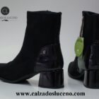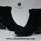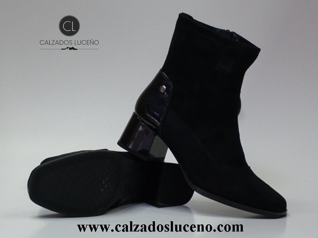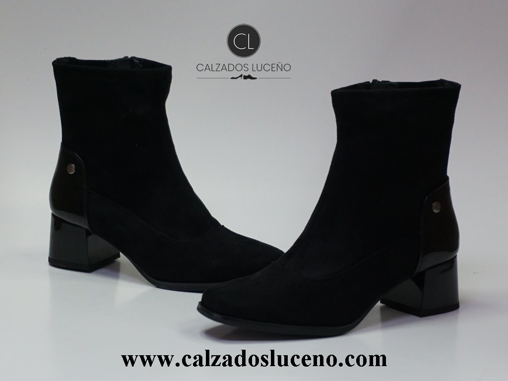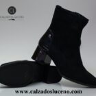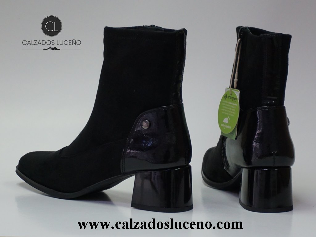 Amarpies Botin Tacon Mujer Licra Negro Modelo AMD27127 Con El Taco en Charol Fabricadas en Antelina Se Adaptan Al Pie.