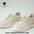 Amarpies Zapatilla Deportiva Mujer Color Beige Modelo AHI30066 Con Plantilla Extraible y Suela Antideslizante.