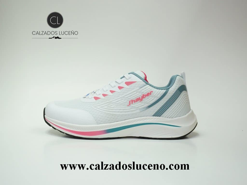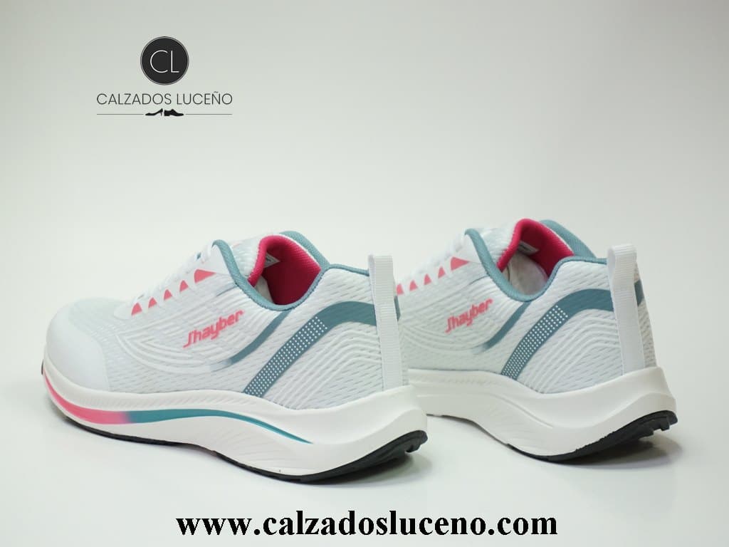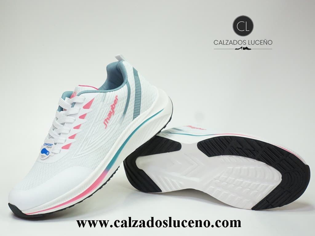 Jhayber Deportiva Mujer Blanca Sin Costuras Modelo Revora Cordones. Zapatilla Deportiva Runing Señora Muy Confortable y Con Un Diseño que no te Dejara Indiferente, Con Suela Absorve Impactos y Plantilla Memory.