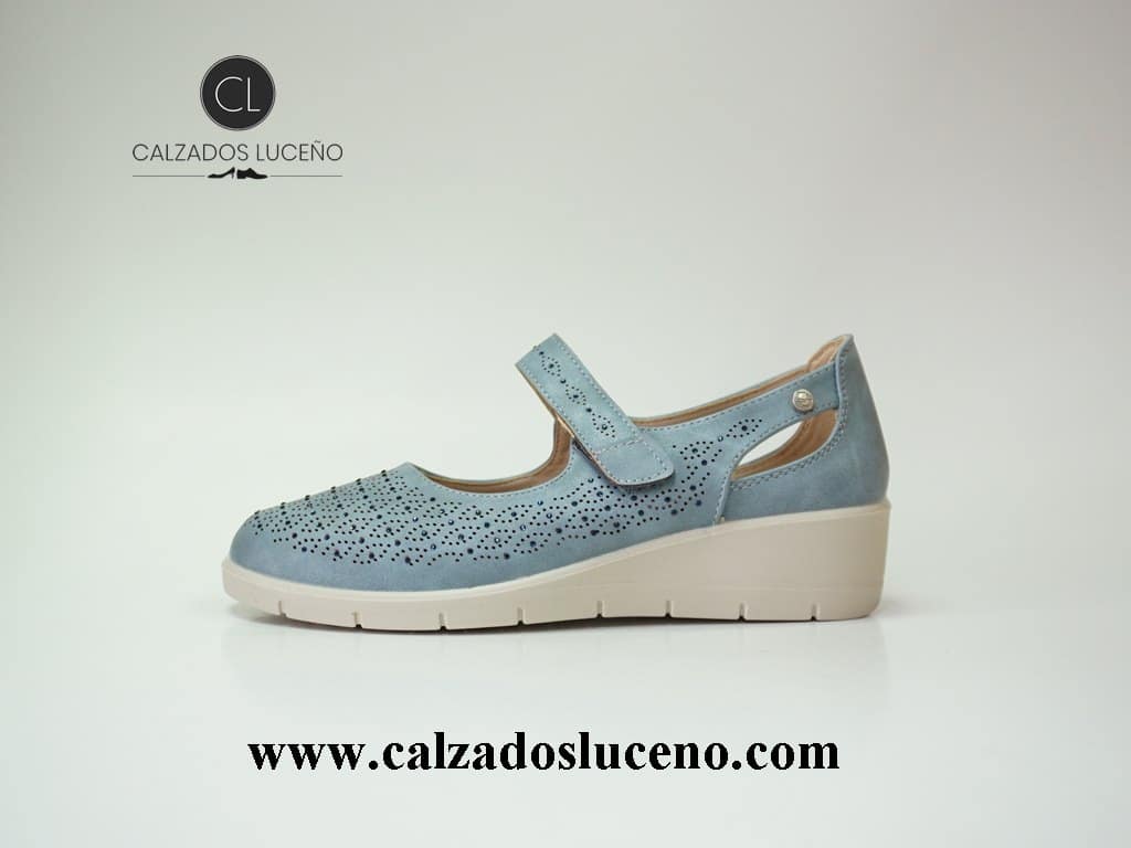 Mysoft Mercedita Mujer Velcro Jeans Cuña Primavera Con Plantilla Extraible y Suela Antideslizante Modelo 26M205.
