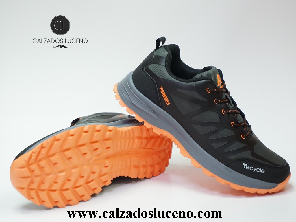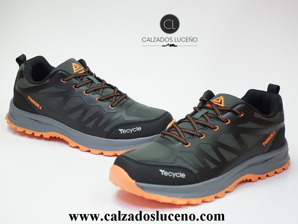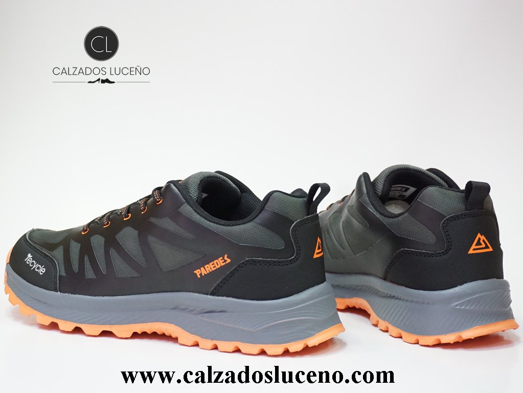 Paredes Zapato Deportivo Montaña Treking Hombre en Color Kaki y Negro Con Plantilla Extraible y Suela Antideslizante Con Cordone. Ideales para Senderismo y Paseon por el Monte.
