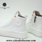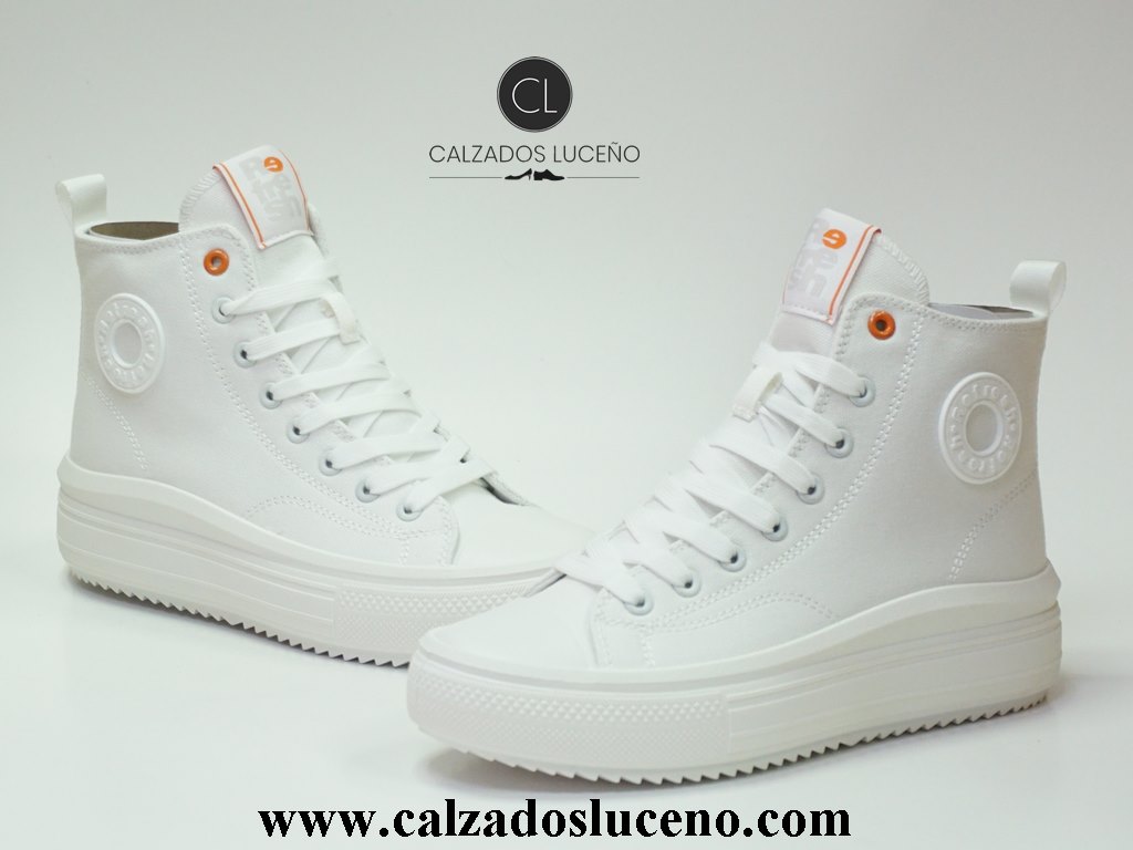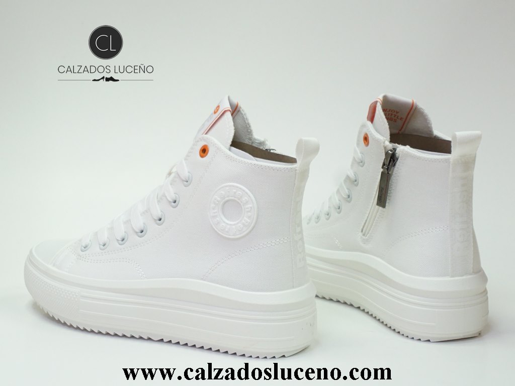 Refresh Bota Lona Plataforma Mujer Blanca Modelo 175062 Fabricadas en Textil Transpirable Con La Puntera de Goma Con Cordones y Cremallera Lateral Con Suela Antideslizantes.