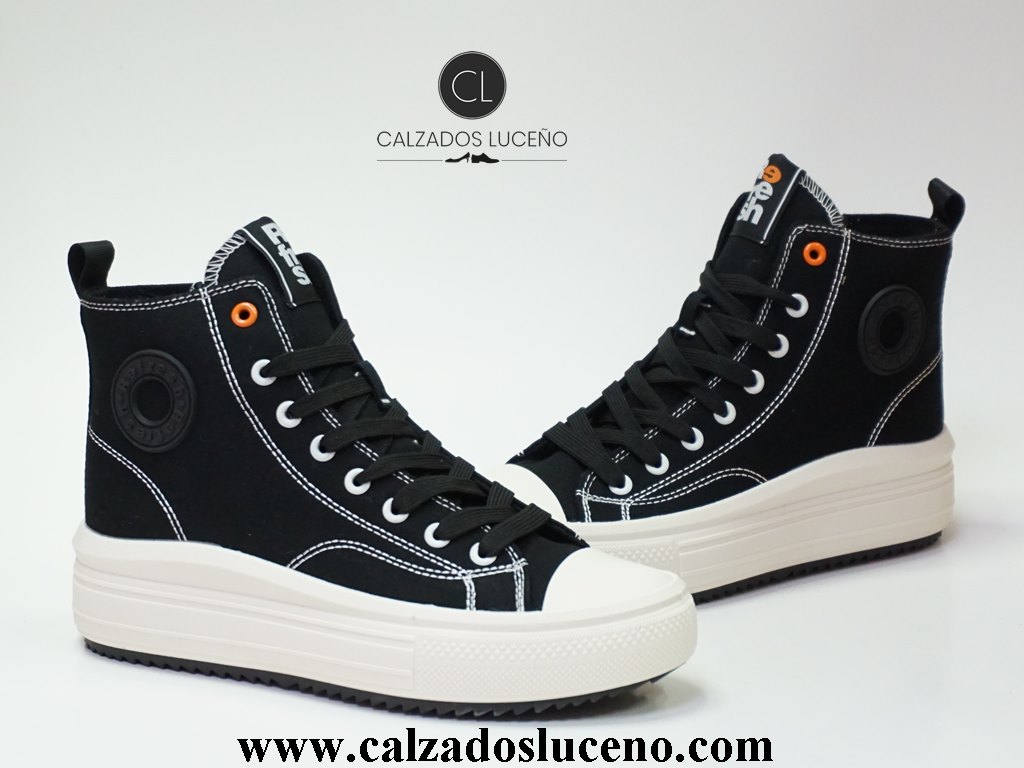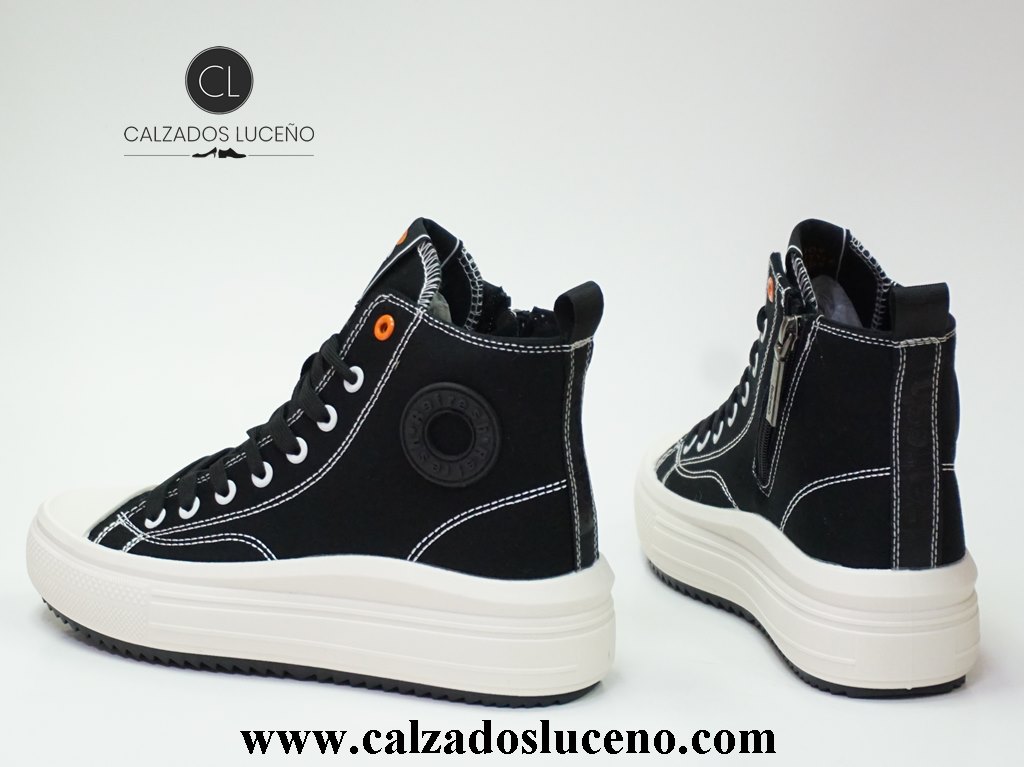 Refresh Bota Lona Plataforma Mujer Negra y Blanca Modelo 175062 Fabricadas en Textil Transpirable Con La Puntera de Goma Con Cordones y Cremallera Lateral Con Suela Antideslizantes.