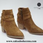 Refresh Botin Campero Mujer Primavera Picado Color Camel Cuero Con Tacon Medio Con un Diseño Da La Auntentica Campera Con Puntera, Tiene La Caña y Empeine Picada. La Suela Es Antideslizante.