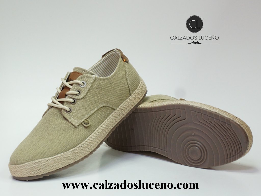 Refresh Zapatilla Hombre Cordones Esparto Modelo 171731 Beige Con Plantilla Acolchada y Suela De Goma Antideslizante.