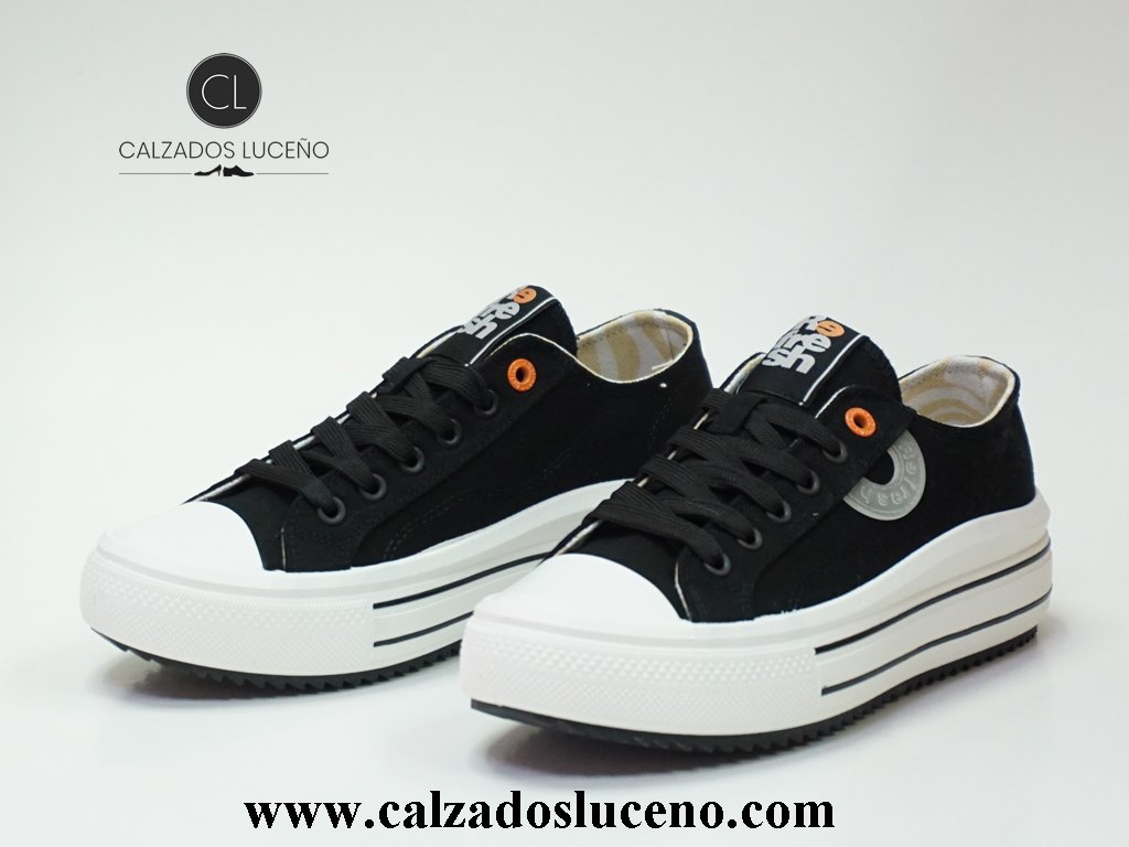 Refresh Zapatilla Lona Plataforma Mujer Negra Modelo 175061 Fabricadas en Textil Transpirable Con La Puntera de Goma Con Cordones Con Suela Antideslizante.