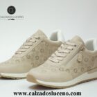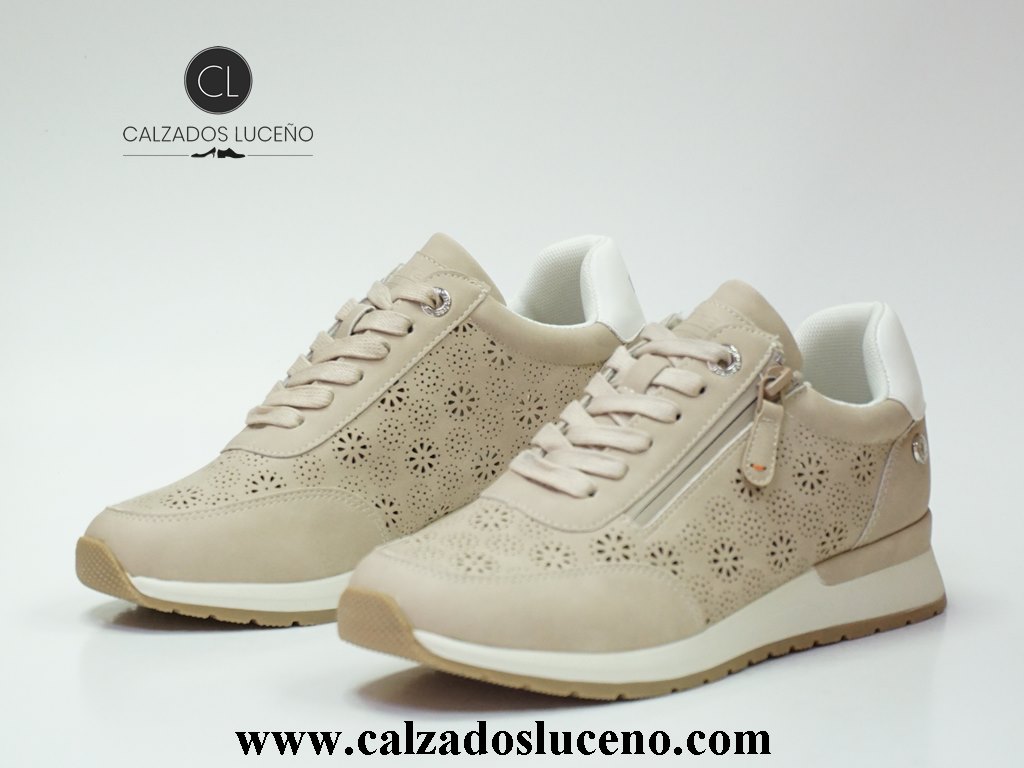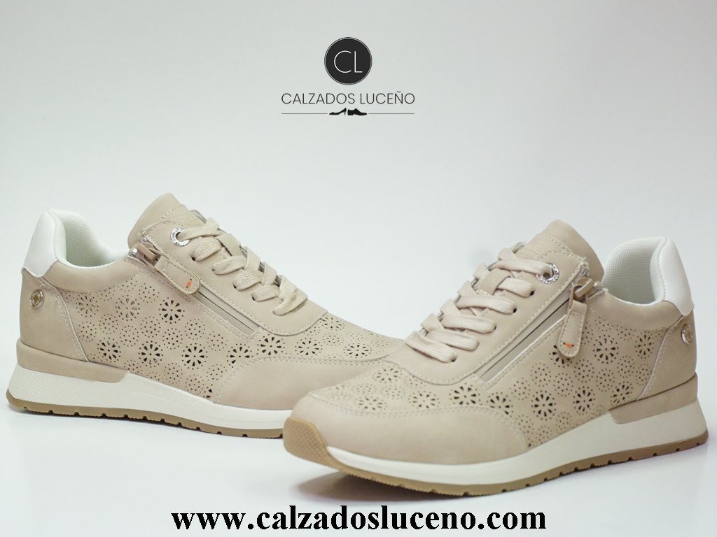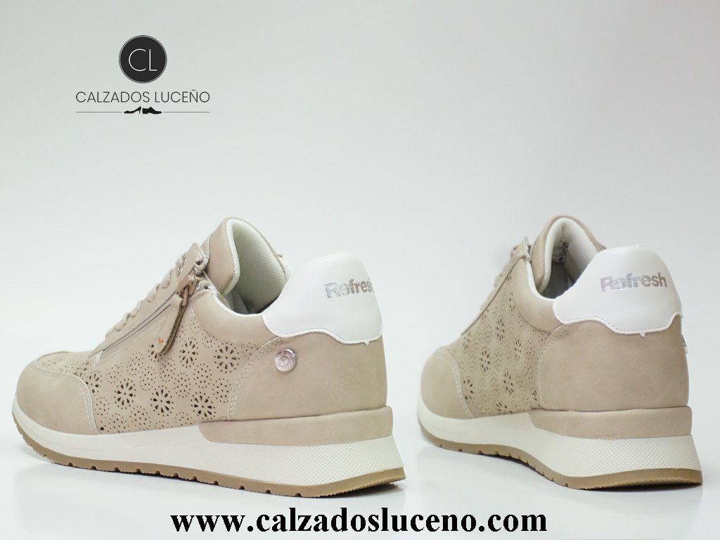 Refresh Zapato Deportivo Mujer Cremallera Color Beige Modelo 175131, Con Un Diseño Muy Atractivo Y Una Comodidad Superior Fabricadas En Microfibra Transpirable, Suela Antideslizante y Plantilla Extraible.